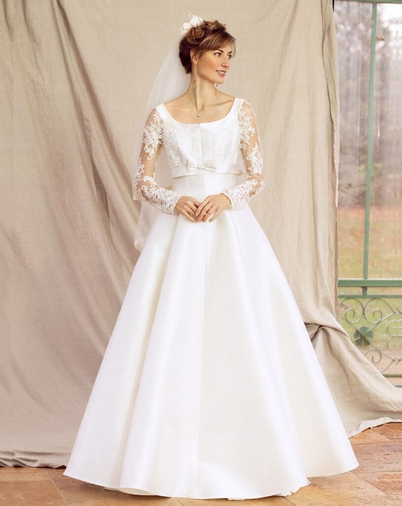 Download gratis een elegant bruidsjurk naaipatroon. Creëer een chique look met een reeks knopen en lusjes. Perfect voor jouw unieke bruiloftsstijl. Begin nu met ontwerpen!